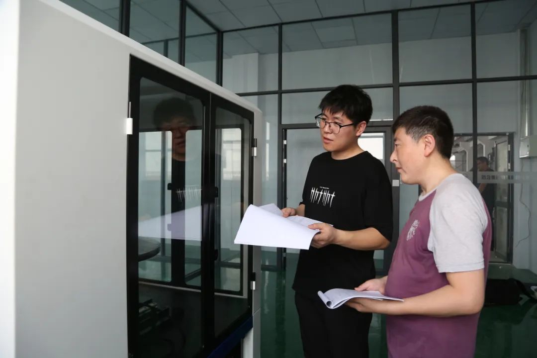 8月9日,在山东格美钨钼材料股份有限公司实验室里,一台XRD衍射仪刚刚“就位”,研发部技术员王赟龙和同事们正在进行钼铌合金靶材的图谱分析。