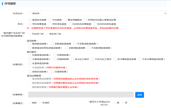 系统构建主体业态及其标注、经营项目、经营类别与申请材料之间的智能联动机制,系统实时逻辑校验,及时提示错误。