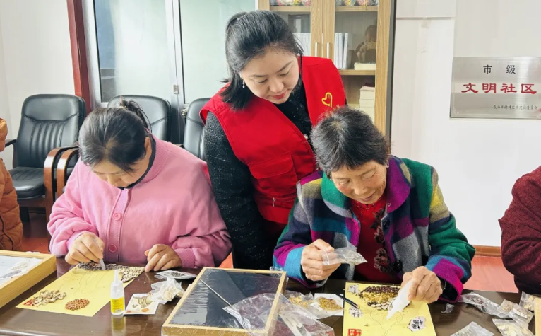 参与活动的社区居民们迅速上手,用药材拼出“福寿”字样、松鹤延年图等作品。“没想到药材能做画!网格员教得细,邻里互相帮,还认识了新朋友,心里真舒坦。”社区居民奎美仙说。