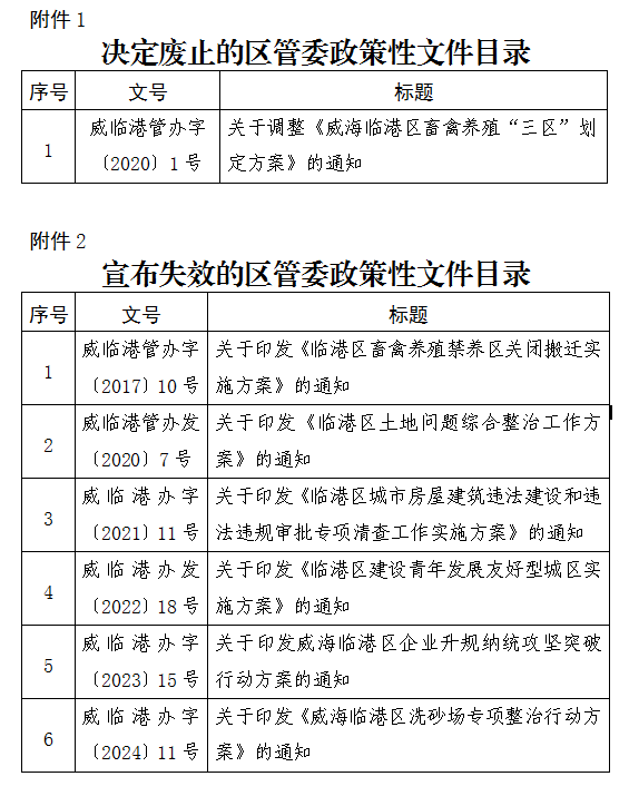 为优化法治化营商环境,根据工作安排,区管委决定对部分区管委政策性文件进行清理,其中废止1件,宣布失效6件。凡废止和宣布失效的区管委政策性文件,自本决定发布之日起一律停止执行,不再作为行政管理的依据。