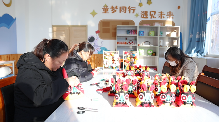 一大早,威海临港区草庙子镇嘉和社区文化书院的“巧手工坊”已然聚集了不少居民,边唠家常边飞针走线,一个个栩栩如生的布老虎、一双双精巧的虎头鞋在谈笑间诞生。这些手工艺品,不仅通过线上线下渠道变成居民口袋里的收入,更成了社区里的“温情通货”——谁家添了宝宝,准能收到一份带着手心温度的祝福。