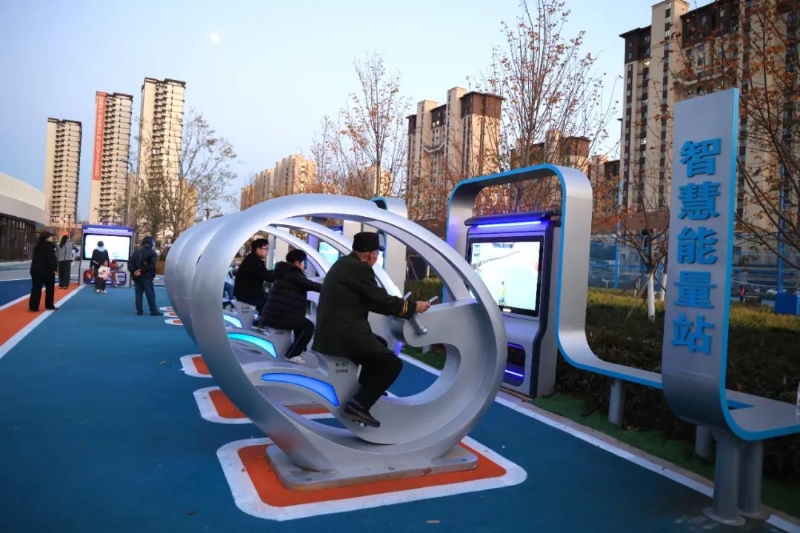 “以前想带孩子玩、自己运动,得跑两个地方,现在在一个公园里全解决了。”家住草庙子镇林清月小区的刘刚,正陪着女儿在智慧能量站“对战”虚拟骑行,大屏幕上的实时排名让孩子笑声不断,生动体现了“城市对青年更友好,青年在城市更有为”的理念。