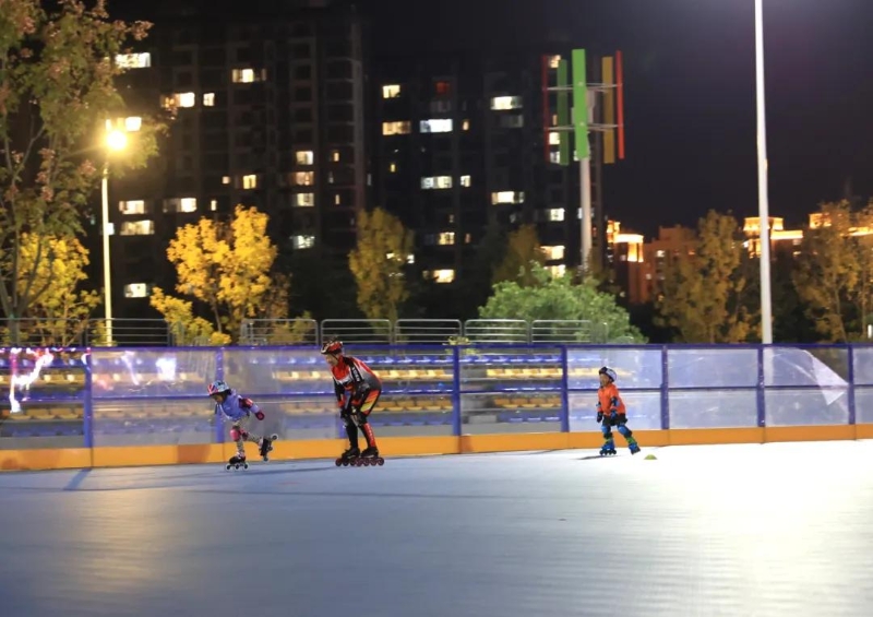 傍晚7点,“轮滑天地”的灯光亮起,7岁旭旭穿着轮滑鞋自由滑行,不知不觉就和同行的伙伴比起了赛。