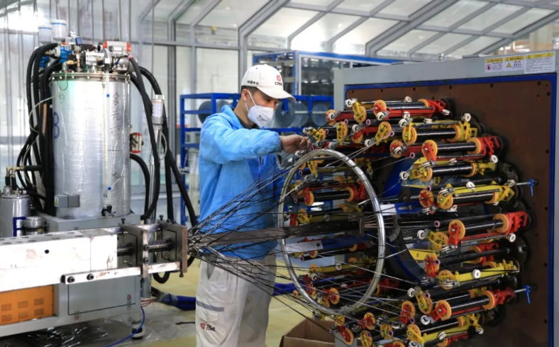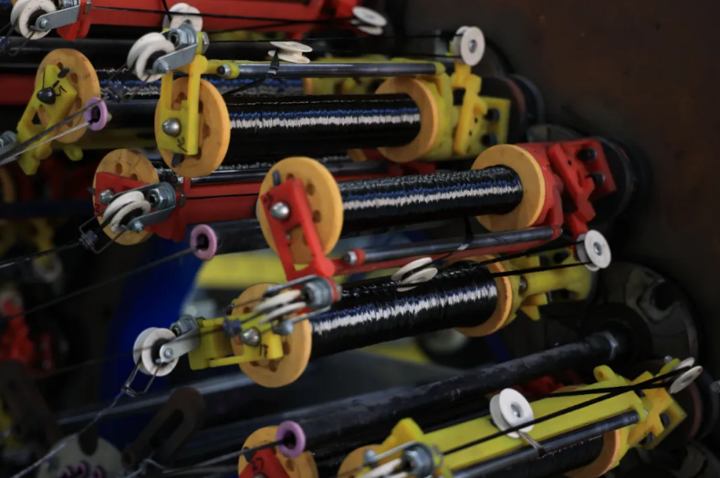 走进位于临港区碳纤维产业园的中车成型科技公司威海轨道交通碳纤维复合材料研发中心基地,一台拉挤—编织—缠绕多工艺复合一体化成型设备尤为瞩目,它对加工精度要求极高的碳纤维原丝,完成了拉伸、缠绕、编织等多个工序,最终使其化为一根根轻巧坚韧的碳纤维管。