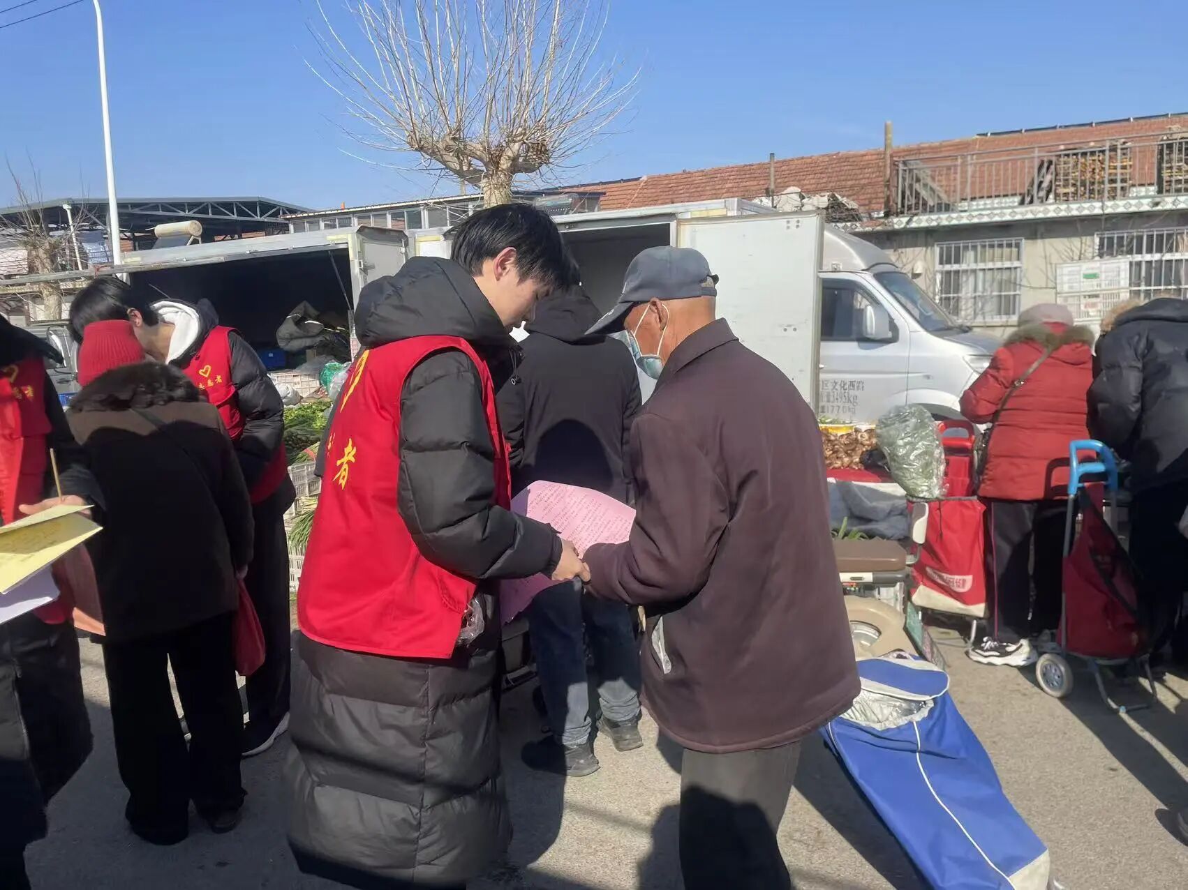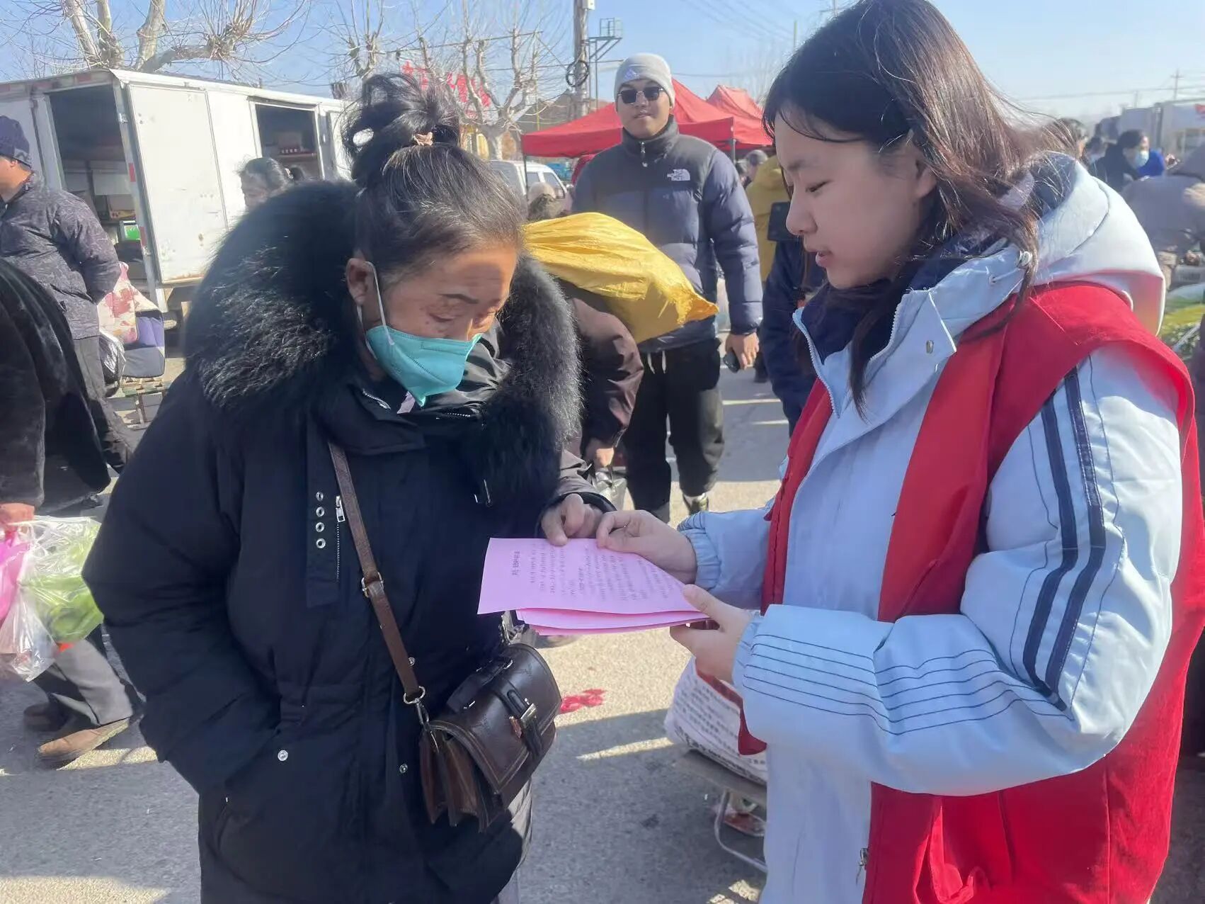 节日氛围浓厚,文明风尚同行。为进一步倡导文明、健康、绿色的节日生活方式,临近年关,大学生志愿者们手持精心准备的“文明过春节”宣传单页,走进辖区集市、沿街商铺等人流集中区域,开展节日新风宣传。他们热情地向过往群众、商户发放单页,并耐心讲解内容,倡导大家节日期间注意安全防范、摒弃铺张浪费、崇尚勤俭节约、遵守公共秩序,共同维护整洁优美的环境,过一个平安、温暖、和谐的新春佳节。亲切的笑脸和细致的讲解,将文明过节的理念播撒到更多群众心中,为喜庆祥和的节日氛围增添了浓厚的文明底色。