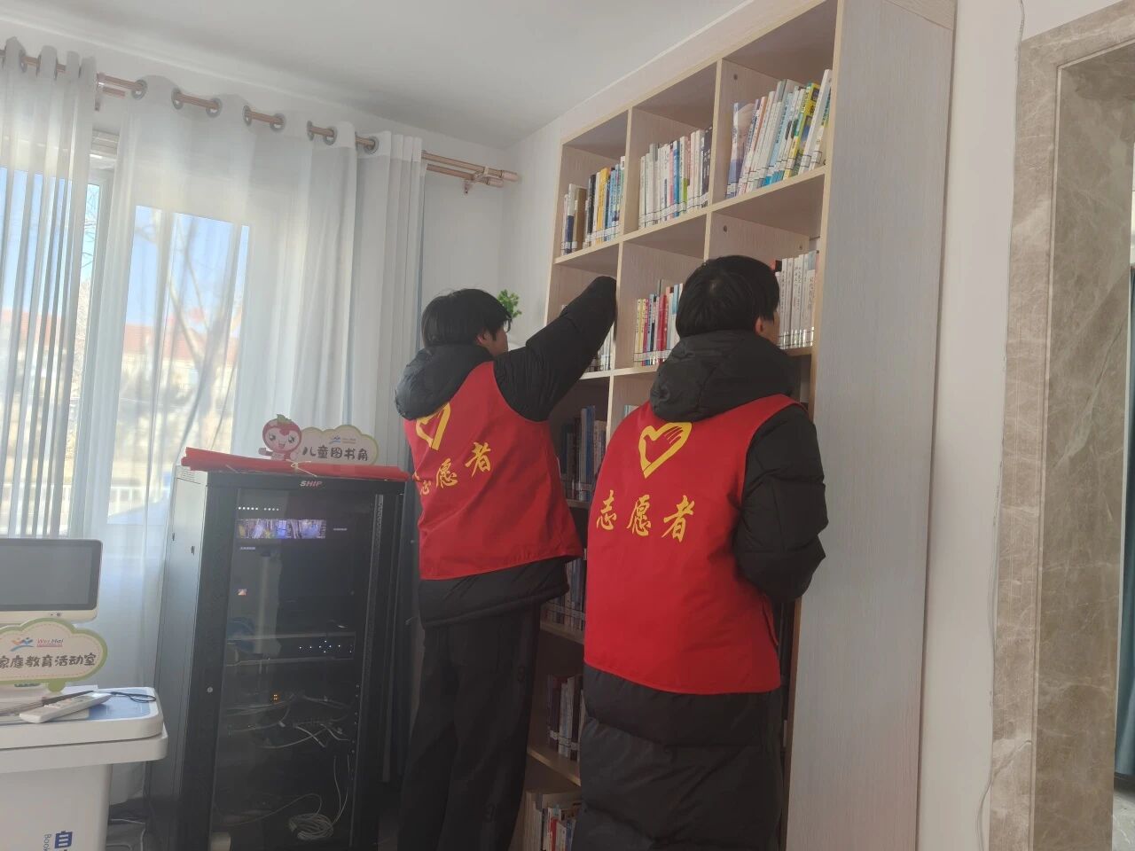 2月9日,怡合社区的街头巷尾与社区书屋里,同样跃动着一抹鲜艳的“志愿红”。一群返乡大学生主动加入“洁净迎新春”的行列,他们身穿红马甲,手持清洁工具,细致清理主干道与绿化带中的零星垃圾,短短一个小时,社区公共环境便显得格外清爽。劳动过后,志愿者们又走进怡合社区灯塔书屋,将一本本图书细心归类、整齐摆放,让书香空间恢复井然秩序。年轻的身影忙碌其间,以实际行动美化家园环境,也为迎接新春注入了一份蓬勃的青春活力。