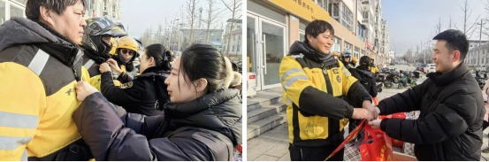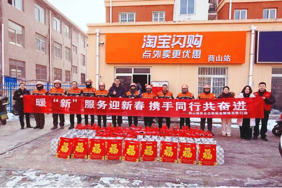 1月28日,蔄山镇党委联合区工委政法工作部、总工会、市场监督管理局,开展“暖‘新’服务迎新春 携手同行共奋进”新业态新就业群体关怀行动,为快递员、外卖骑手、暖“新”商户等一线劳动者送上节日慰问与暖心服务,凝聚基层治理“新”力量。