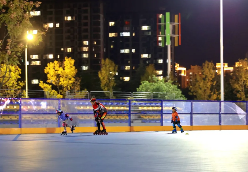 春节假期,公园里人不少。智慧跑道上有晨跑的,球场里年轻人组队打篮球,轮滑天地边家长带着孩子排队。这座开放不久的公园,成了大伙儿过年的新去处。