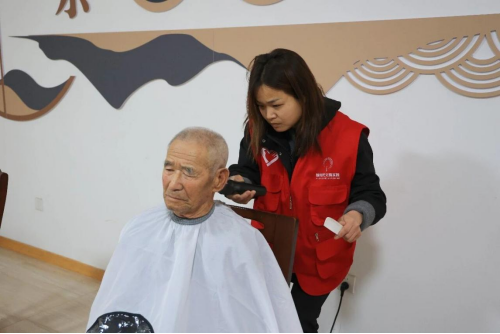 志愿服务的暖流,在幸福苑的各个角落持续涌动。蔄山卫生院的医护志愿者组成义诊团队,耐心为老人们量血压、问病情、讲养生知识,细致解答每一个健康疑问,用专业与坚守,守护老人们的身心健康,用友善之举为老人的晚年生活保驾护航;“蔄意义剪”志愿服务队的理发师们,围在老人身边,细心询问大家的发型需求,小心翼翼地修剪头发,一点点打理出清爽利落的造型,让老人们能以精神饱满的模样,迎接新年的到来。